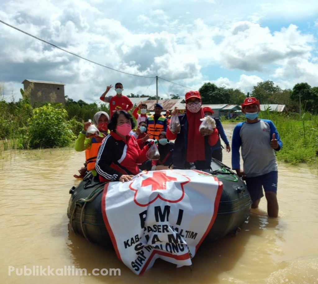 PUBLIKKALTIM.COM, TANAPASER – Palang Merah Indonesia (PMI) Kabupaten Paser bagi sembako untuk desa terdampak banjir.