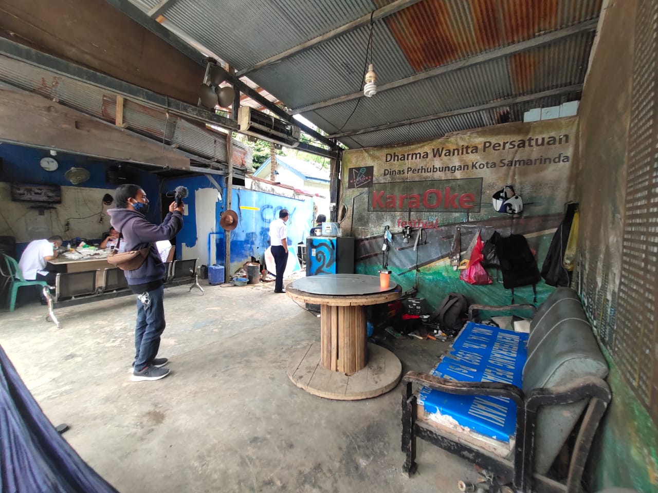 Herwan pun mengajak awak media untuk melihat ruang karaoke semi outdoor tersebut.