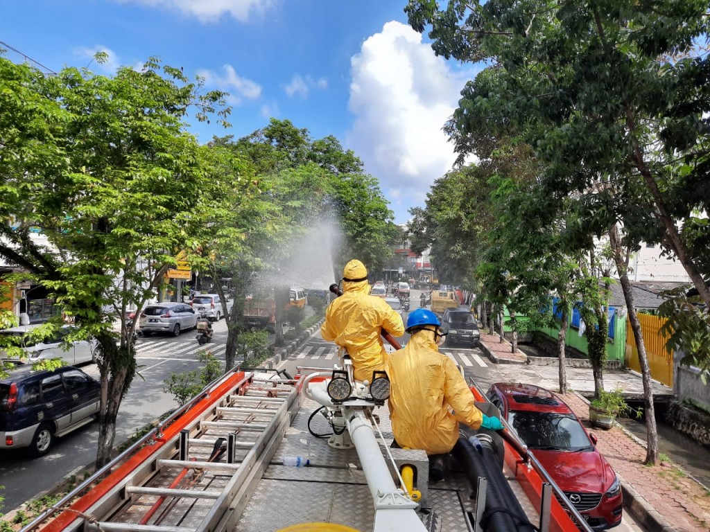 Pertamina mengerahkan satu unit mobil pemadam kebakaran berikut personil membantu penyemprotan. Mobil damkar berkemampuan 8 ribu liter bertugas di Jalan Letjen Suprapto hingga Lapangan Merdeka.