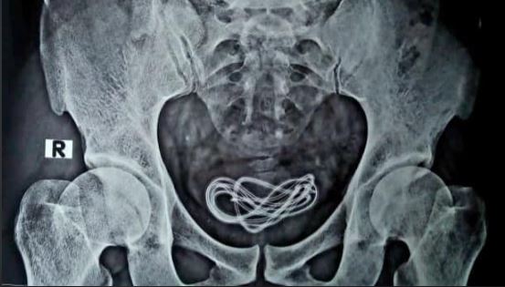 Hasilnya ditemukan benda seperti kabel di dalam perut pasien.