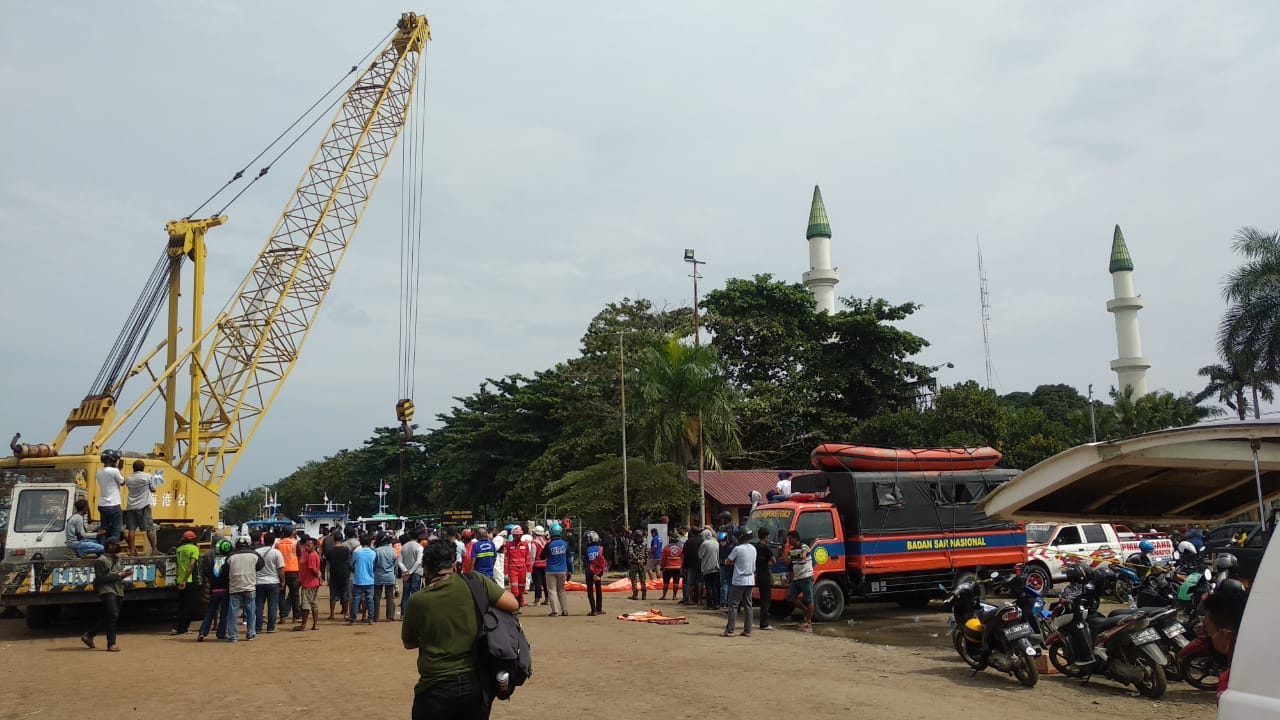 Polisi kemudian meminta crane yang terdapat di pelabuhan turut diturunkan untuk mengangkat bangkai mobil.