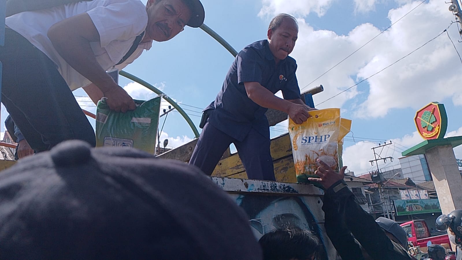 Ratusan warga dari berbagai lapisan usia terlihat mengantri dengan penuh semangat, mencerminkan kebutuhan mendesak akan bantuan beras di tengah kenaikan harga di pasaran.