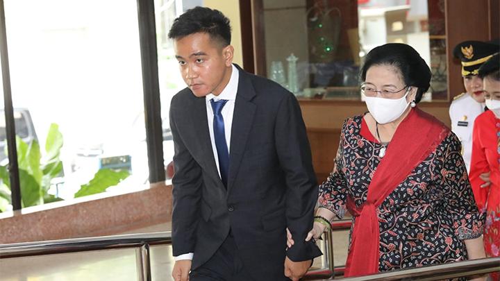 PUBLIKKALTIM.COM – Ketua Umum PDI Perjuangan, Megawati Soekarnoputri membisiki sesuatu ke Wali Kota Solo, Gibran Rakabuming Raka.
