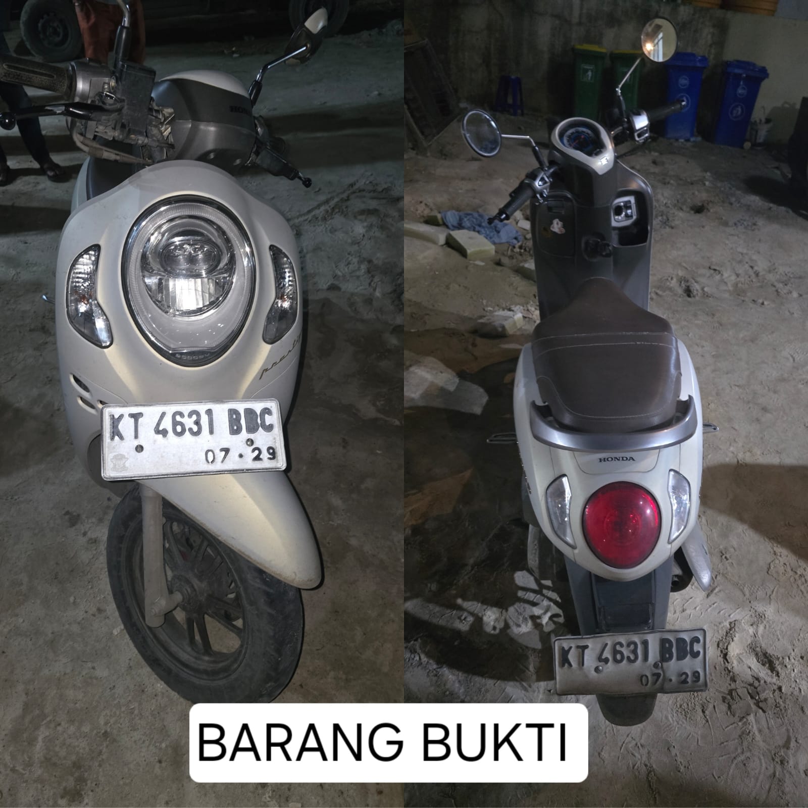 Pelaku ditangkap tanpa perlawanan, sementara motor Scoopy milik korban ditemukan dalam keadaan utuh dan langsung diamankan sebagai barang bukti.