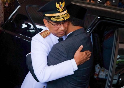 Usai serah terima, Anies Baswedan memeluk Heru Budi Hartono dengan penuh haru.