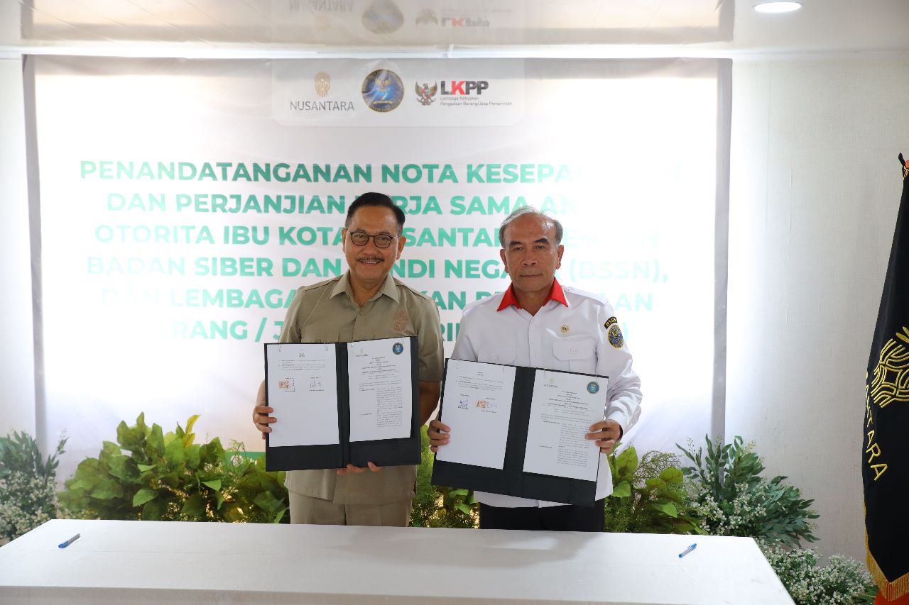 PUBLIKKALTIM.COM – Otorita Ibu Kota Nusantara (IKN) tandatangani nota kesepahaman (MoU) dengan Badan Siber dan Sandi Negara (BSSN) dan Lembaga Kebijakan Pengadaan Barang/Jasa Pemerintah (LKPP) di Hunian Pekerja Konstruksi IKN, Selasa (08/08/2023).