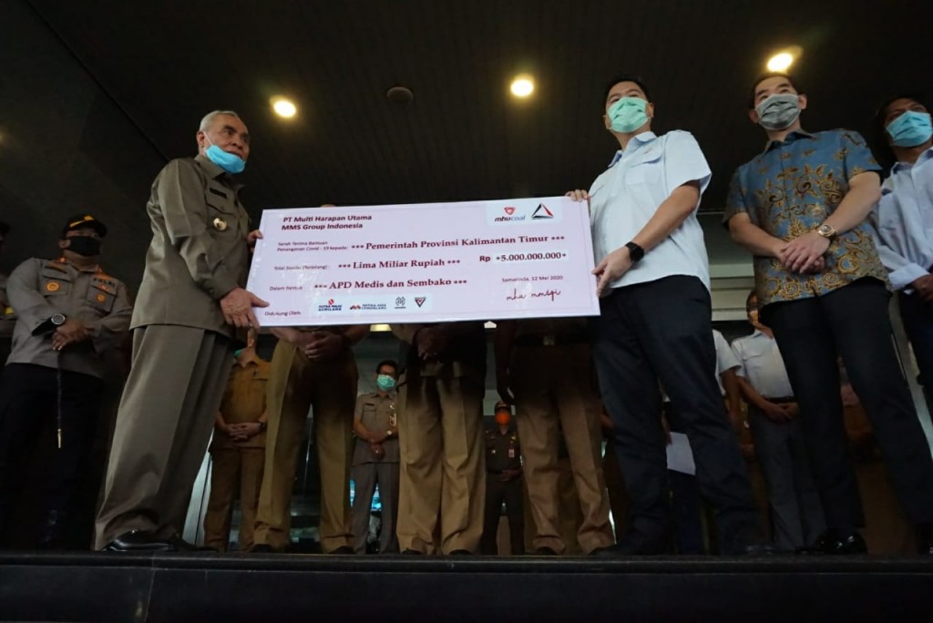 Bantuan diserahkan secara simbolis oleh Adhi Dharma Mustopo selaku Presiden Direktur PT MHU dan diterima langsung Gubernur Kaltim Isran Noor yang didampingi sejumlah pejabat terkait lainnya, Selasa (12/5/2020) siang, di pelataran kantor gubernur Kaltim.