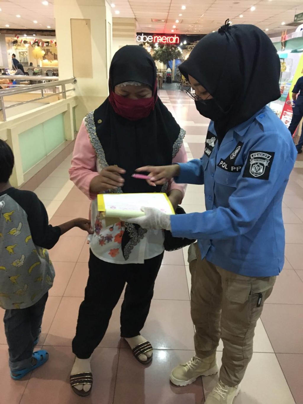 Yang menjadi titik pertama sosialisasi yakni Mall SCP di Kawasan Jalan Mulawarman juga didapati beberapa pengunjung serta pemilik tenan yang tertangkap basah tidak menggunakan masker.