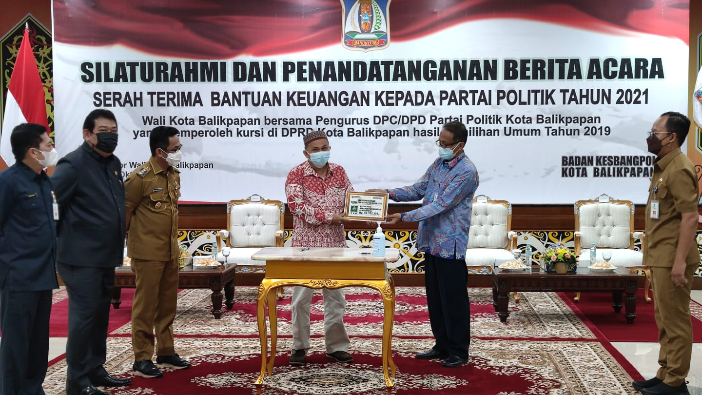PUBLIKKALTIM.COM, BALIKPAPAN – Pemerintah Kota (Pemkot) Balikpapan menggelar silaturahmi dan penanda tanganan berita acara serah terima bantuan keuangan kepada partai politik tahun 2021, Senin (25/10/2021).