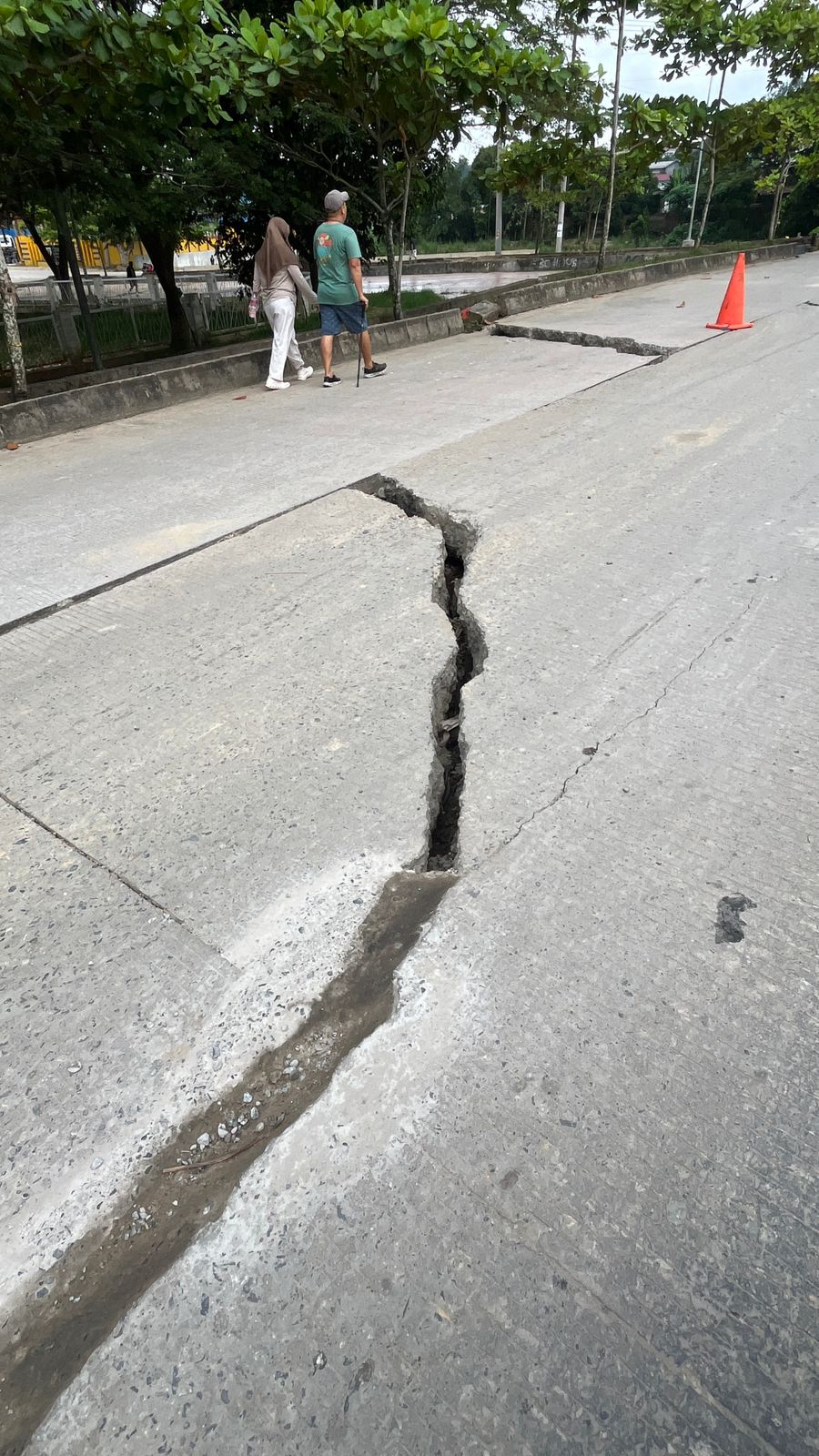 “Kami akan evaluasi dulu apakah ada beban berlebihan yang lewat di sana, seperti truk besar atau alat berat kami. Kami belum melihat posisi titik kerusakan secara detail, apakah itu disebabkan oleh pekerjaan kami atau faktor lain,” ujarnya.