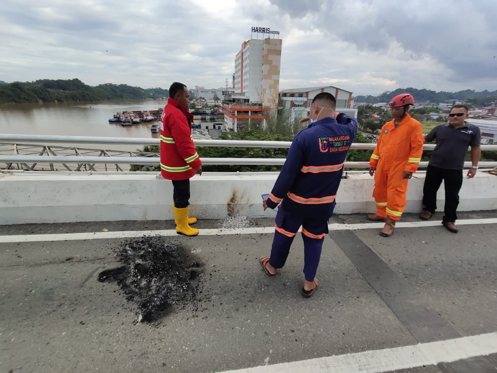 PUBLIKKALTIM.COM, SAMARINDA – Terlihat asap hitam membumbung ke langit dari atas Jembatan Mahakam IV yang menghubungkan segmen Samarinda Kota dengan Samarinda Seberang, Minggu (8/3/2020) sekira pukul 15.00 Wita,