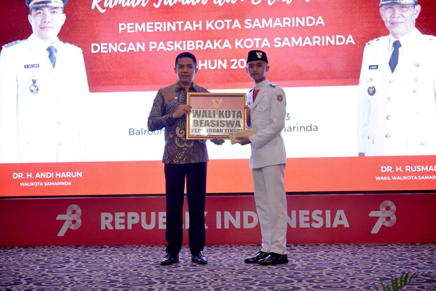 PUBLIKKALTIM.COM – Wali Kota Samarinda, Andi Harun berikan bantuan beasiswa hingga sarjana dan bantuan uang tunai sebesar Rp 10 juta kepada salah satu anggota Paskibraka tahun 2023.