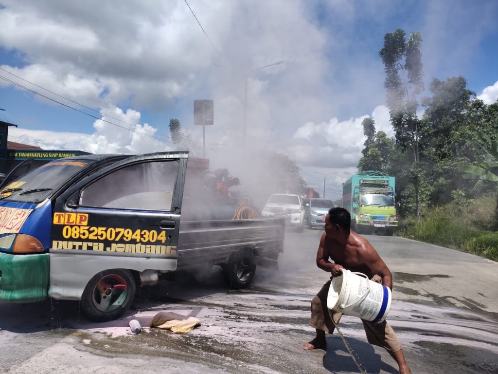 PUBLIKKALTIM.COM, SAMARINDA – Seorang pemuda dibuat terkejut karena mobil pikap yang dikendarainya tiba-tiba terbakar saat sedang melintas di Jalan Suryanata, Bukit Pinang, Samarinda Ulu, sekira pukul 12.45 Wita pada hari ini (2/6/2020).