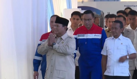 Setibanya di lokasi, Presiden Prabowo langsung mendapat sambutan dari Menteri Energi dan Sumber Daya Mineral (ESDM) Bahlil Lahadalia serta Direktur Utama Pertamina Simon Aloysius Mantiri.