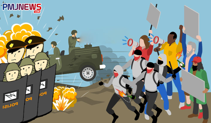 Massa tidak hanya menyampaikan aspirasi, tetapi juga melakukan perusakan.